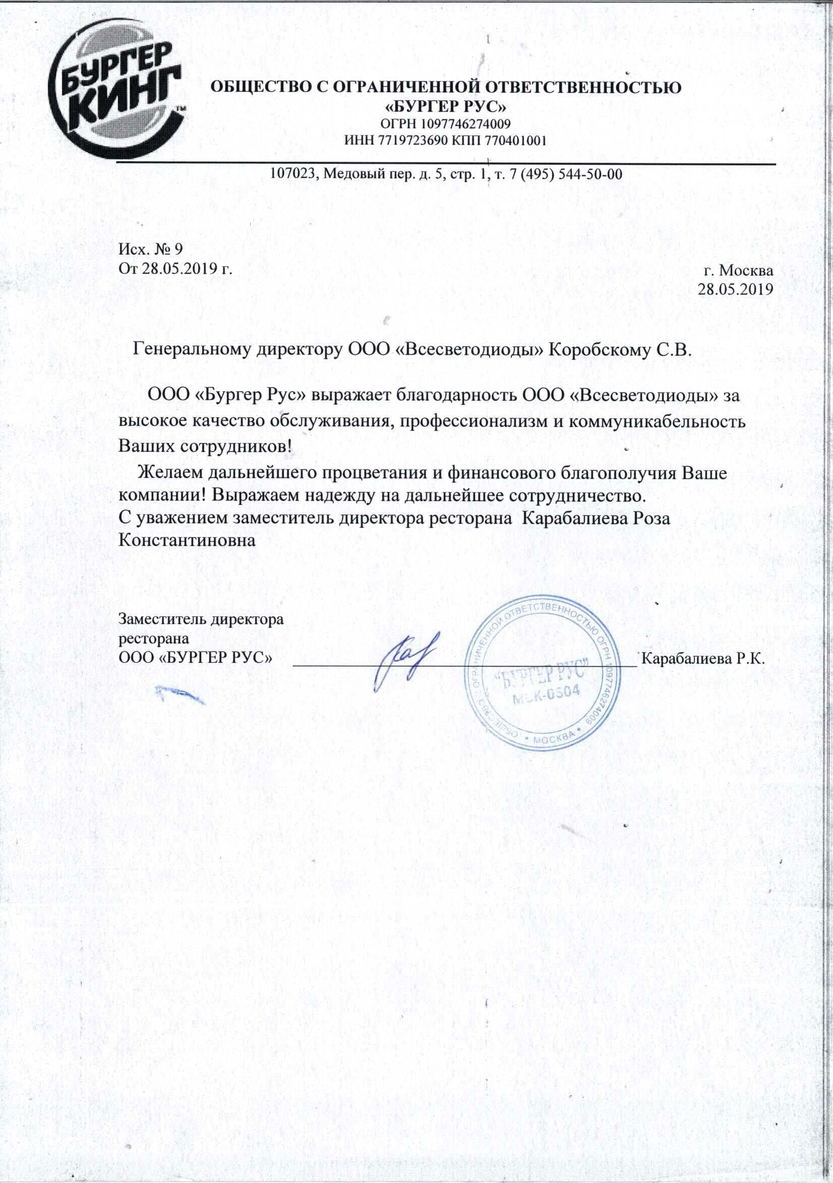 Бургер Кинг. Освещение Клиентской зоны